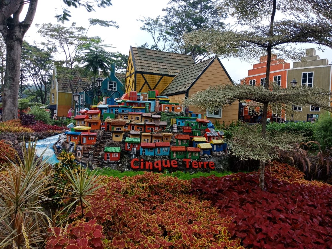 Berfoto sambil menikmati wahana dan keindahan Devoyage Bogor, tempat wisata yang dibuat untuk para pemburu foto Instagramable, dengan konsep taman berisi bangunan atau landmark terkenal dari berbagai negara Eropa.